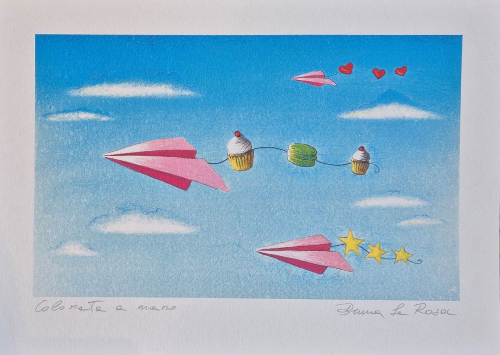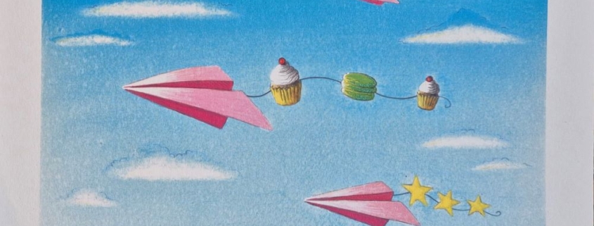 “Cuori, stelle e cupcakes“, serigrafia su carta cm 18×25.