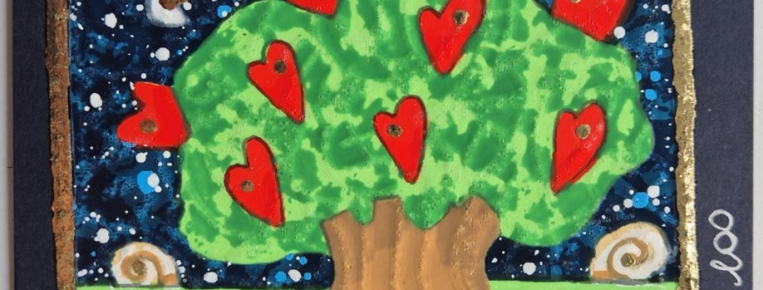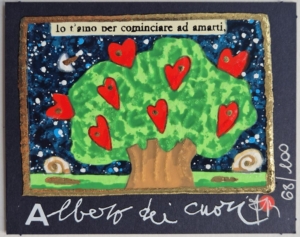 “Albero di cuori“, serigrafia materica su carta, cm 8×10.