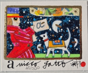 “Amico gatto“, serigrafia materica su carta, cm 8×10.