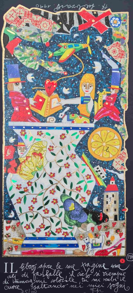 Nelle sue opere pittura, scrittura e immaginazione si intrecciano dando vita a racconti sospesi tra realtà e fiaba.