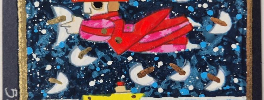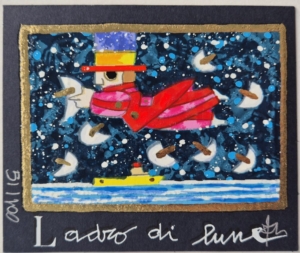 “Ladro di lune“, serigrafia materica su carta, cm 8×10.