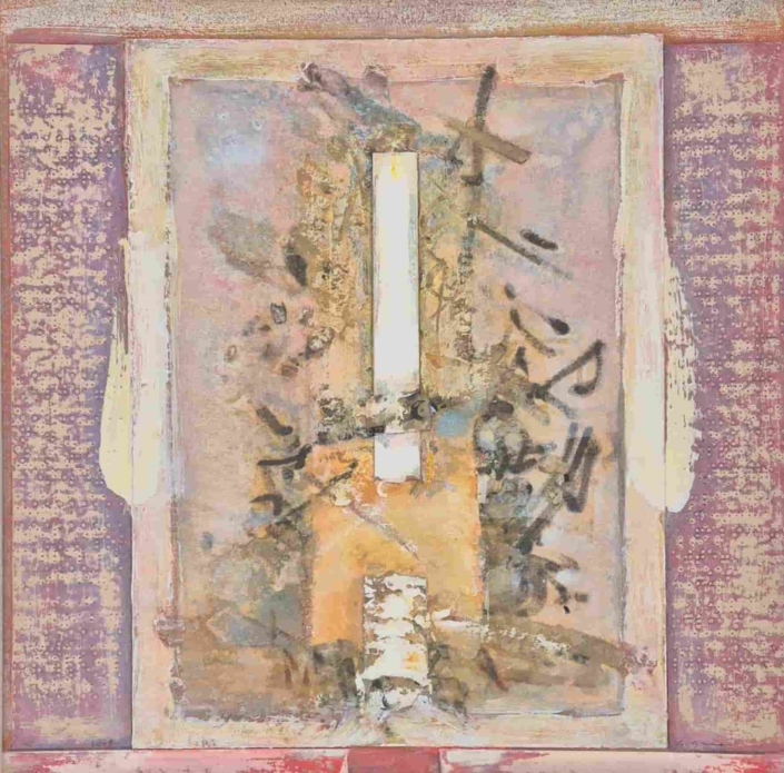 Tecnica mista su pagine di libro rigide con applicazione, cm 22x23