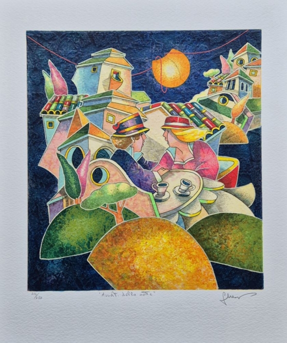 Serigrafia ritoccata a mano dall'artista, cm 19x25.