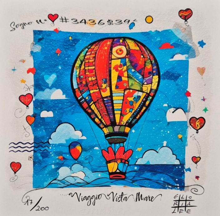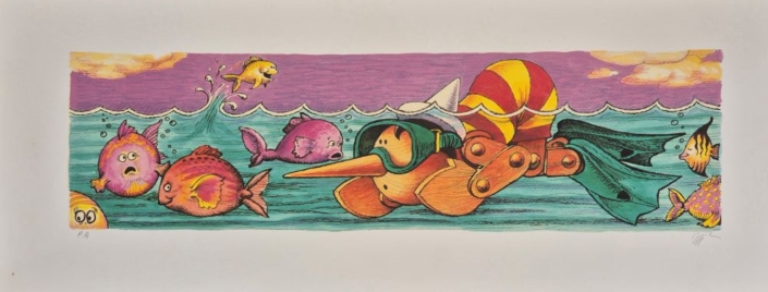 Serigrafia ritoccata a mano dall'artista, cm 17x42.