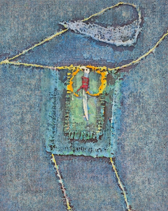 Tecnica mista su tela di juta, cm 24x30.