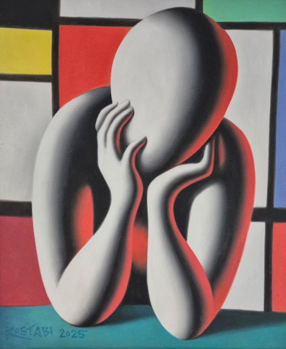 Mark Kostabi, “Timeless embrace”.