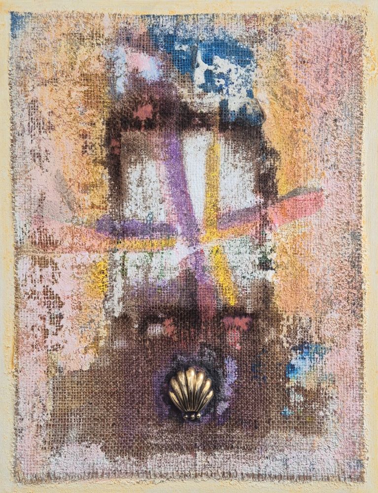 Senza titolo, tecnica mista su tavola con applicazione.