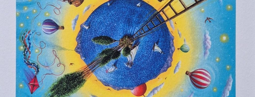La sua ricerca si muove in un linguaggio figurativo dal sapore onirico, dove scale verso il cielo, onde impetuose e paesaggi surreali diventano immagini di sogno e libertà.