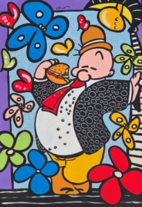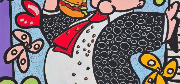 Le sue opere si distinguono per colori brillanti, contorni neri marcati e soggetti iconici reinterpretati con ironia e leggerezza, tra richiami al mondo dei cartoon e personaggi celebri.